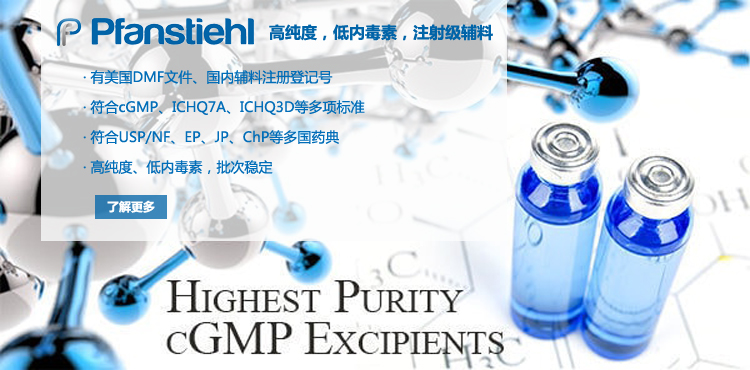 “熱烈祝賀Pfanstiehl的注射級甘氨酸Glycine(G-140)喜獲CDE登記號F20250000403, 這是Pfanstiehl產品獲得的第18個CDE登記號!”甘氨酸在醫藥輔料制劑中應用廣泛,, 可作為緩沖劑,增溶劑,穩定劑等,具有諸多優勢。Pfanstiehl秉承一貫高品質理念,為滿足全球生物制藥行業對于高品質甘氨酸的需求,隆重推出的注射級甘氨酸Glycine (G-140), 具有超高純度,超低內毒素,超低金屬殘留的特點,單獨檢測29種金屬離子,并且新增DNA,RNA,DNA酶,RNA酶和脂肪酶,亞硝酸鹽等多項質量指標的檢測,符合多國藥典規定(USP, EP, BP, JPE, ChP),可用于生物治療性藥物和疫苗的生產。產品信息:· 產品名稱:Glycine, High Purity, Low Endotoxin, Low Metals, USP, EP, BP, JPE, ChP (G-140)· 中文名稱:甘氨酸· 分子式:C2H5NO2· 分子量:75.07 g / mol· CAS號:56-40-6· 產品貨號:G-140產品特點: · 超高純度,超低內毒素,超低微生物含量,超低金屬雜質殘留· 質量指標新增DNA,RNA,DNA酶,RNA酶,脂肪酶和亞硝酸鹽檢測· 符合多國藥典:USP, EP, BP, JPE, ChP· 符合ICH Q3D標準· 符合GMP標準· 已獲DMF和CDE登記號 產品應用:· 緩沖劑· 穩定劑· 增溶劑如果您對Pfanstiehl注射級別Glycine G-140感興趣,歡迎聯系Pfanstiehl 中國區代理商北京西美杰科技有限公司獲得如下詳細的產品概況說明文件和測試樣品。Pfanstiehl Inc.最新產品系列如下,歡迎聯系北京西美杰科技有限公司獲取100g裝免費樣品。北京西美杰科技有限公司為Pfanstiehl中國代理,為客戶提供完善的技術支持與售后服務。歡迎撥打西美杰客服電話400-050-4006或者登陸網站www_xmjsci_com.bmooio.pro了解更多信息。 更多>西美杰介紹